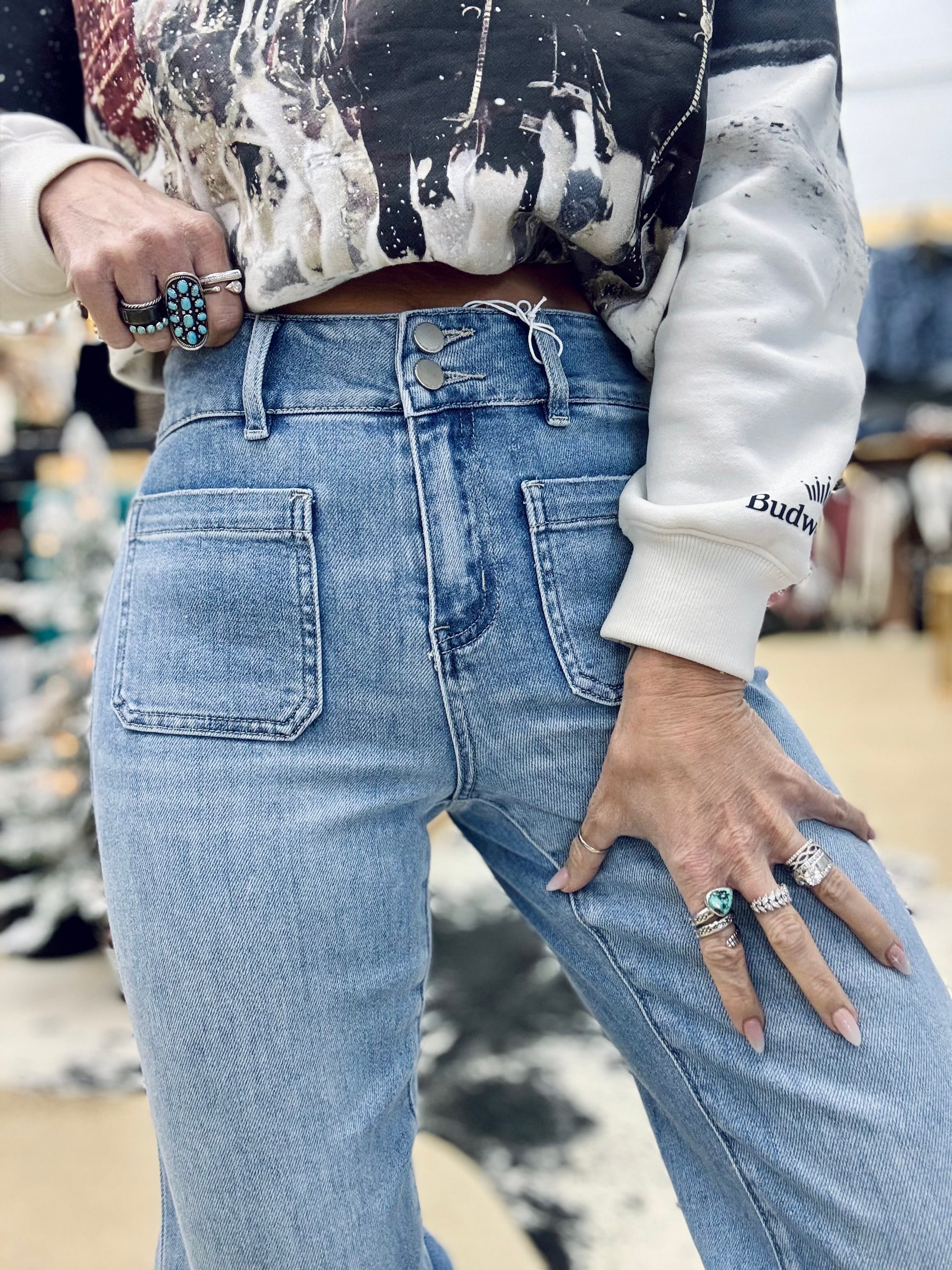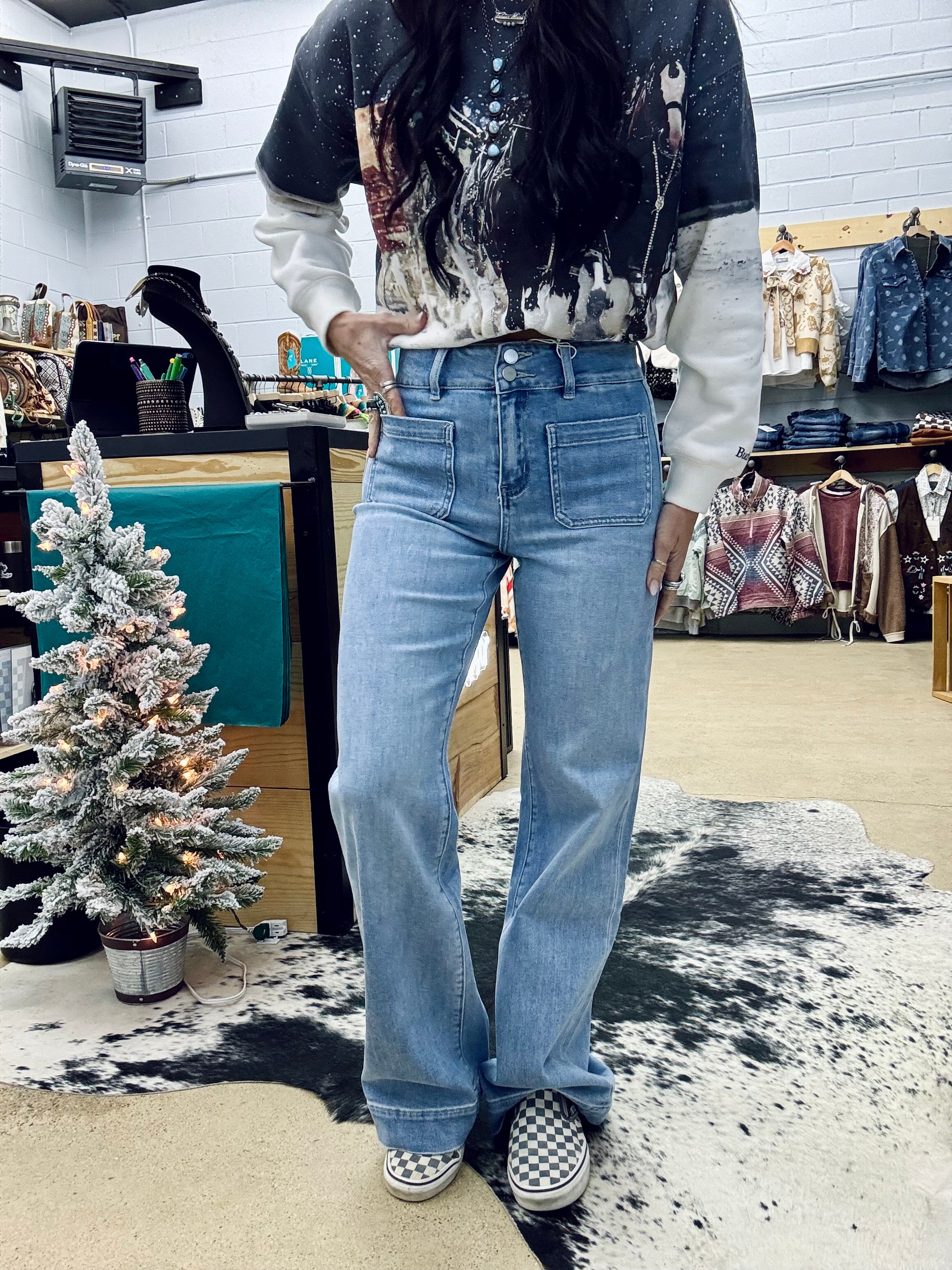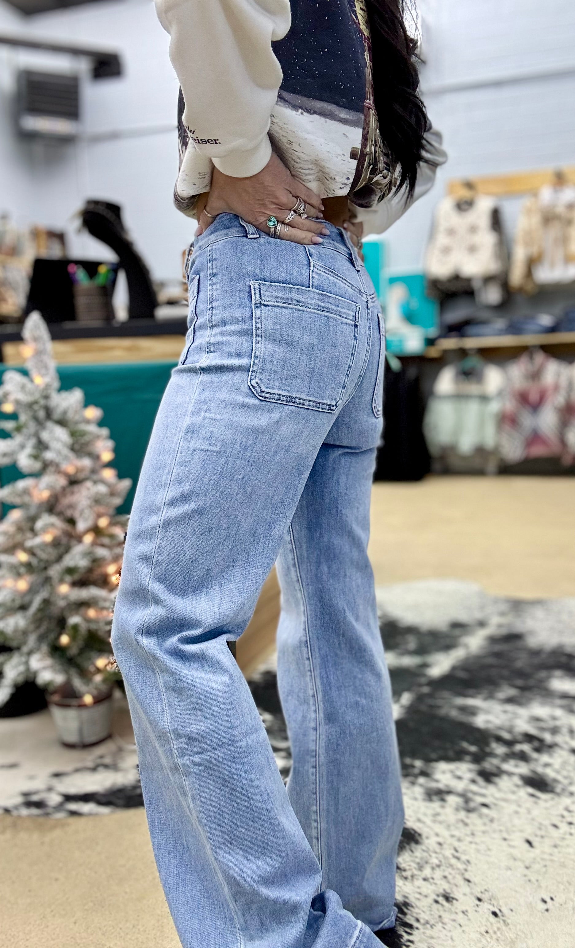 - Rise 11”, Inseam 31”, Leg Opening 17 1/2”