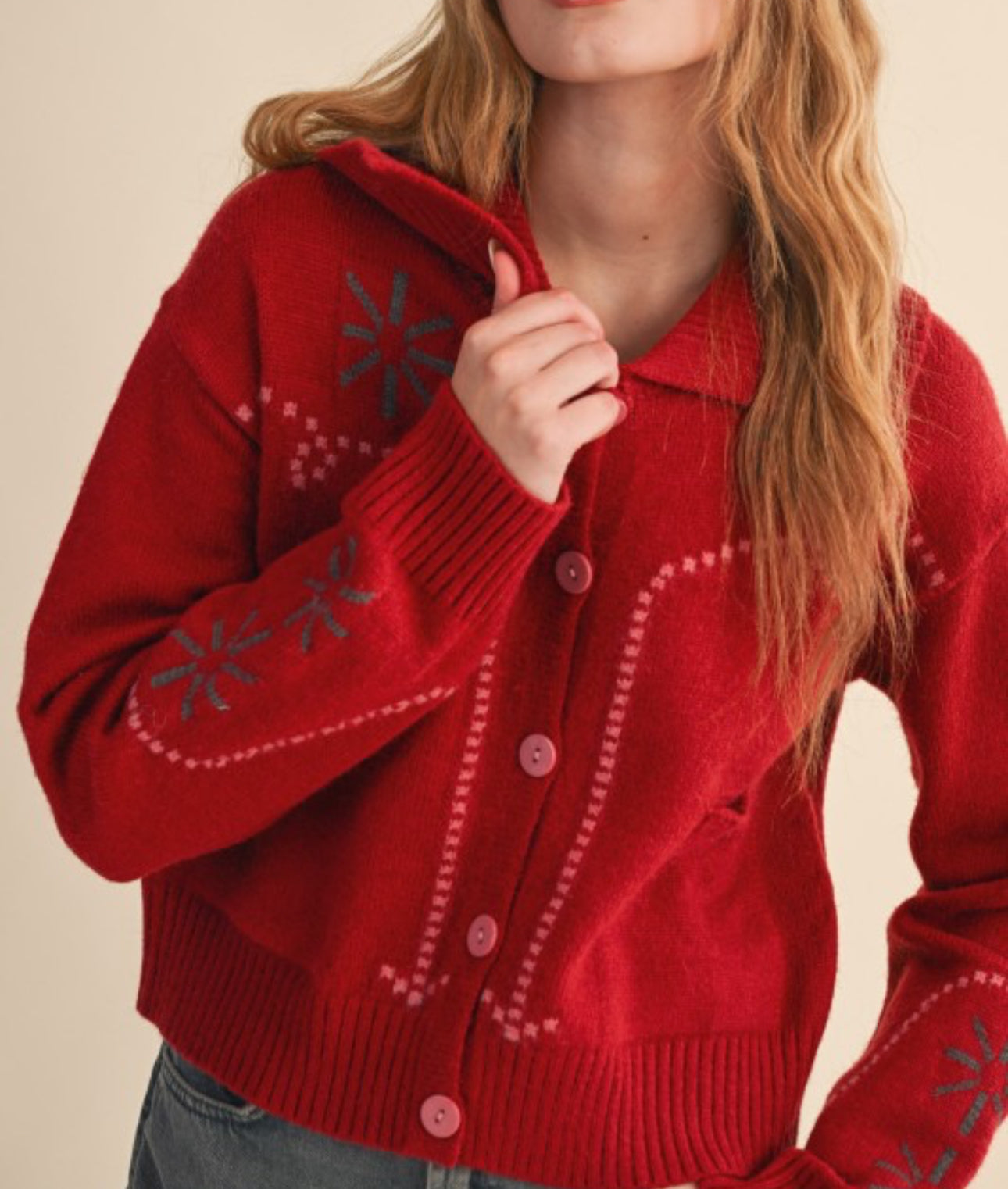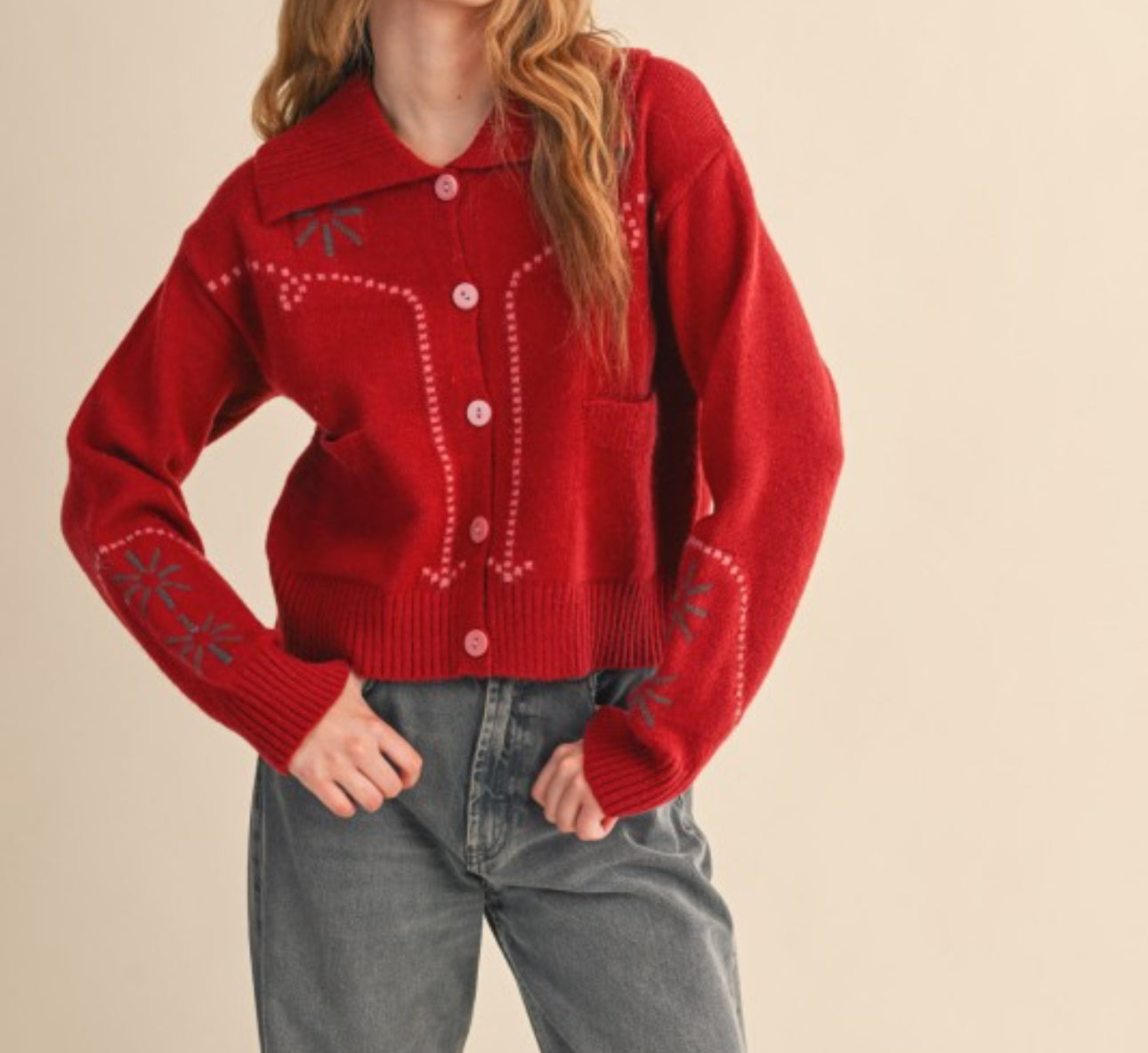 • Western Motif Sweater Cardigan